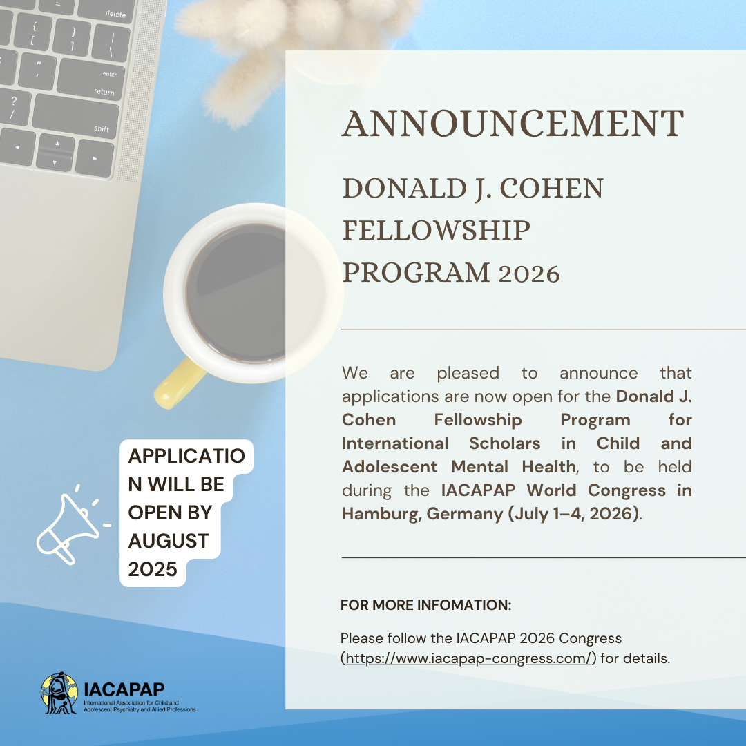 Die Internationale Gesellschaft für Kinder- und Jugendpsychiatrie (IACAPAP) schreibt jährlich das Donald J. Cohen Fellowship Program für internationale Forscher*innen im Bereich Kinder- und Jugend Mentale Gesundheit aus. Alle Informationen zum Program finden Sie nachfolgend: Dear colleagues, We are pleased to announce that applications are now open for […]